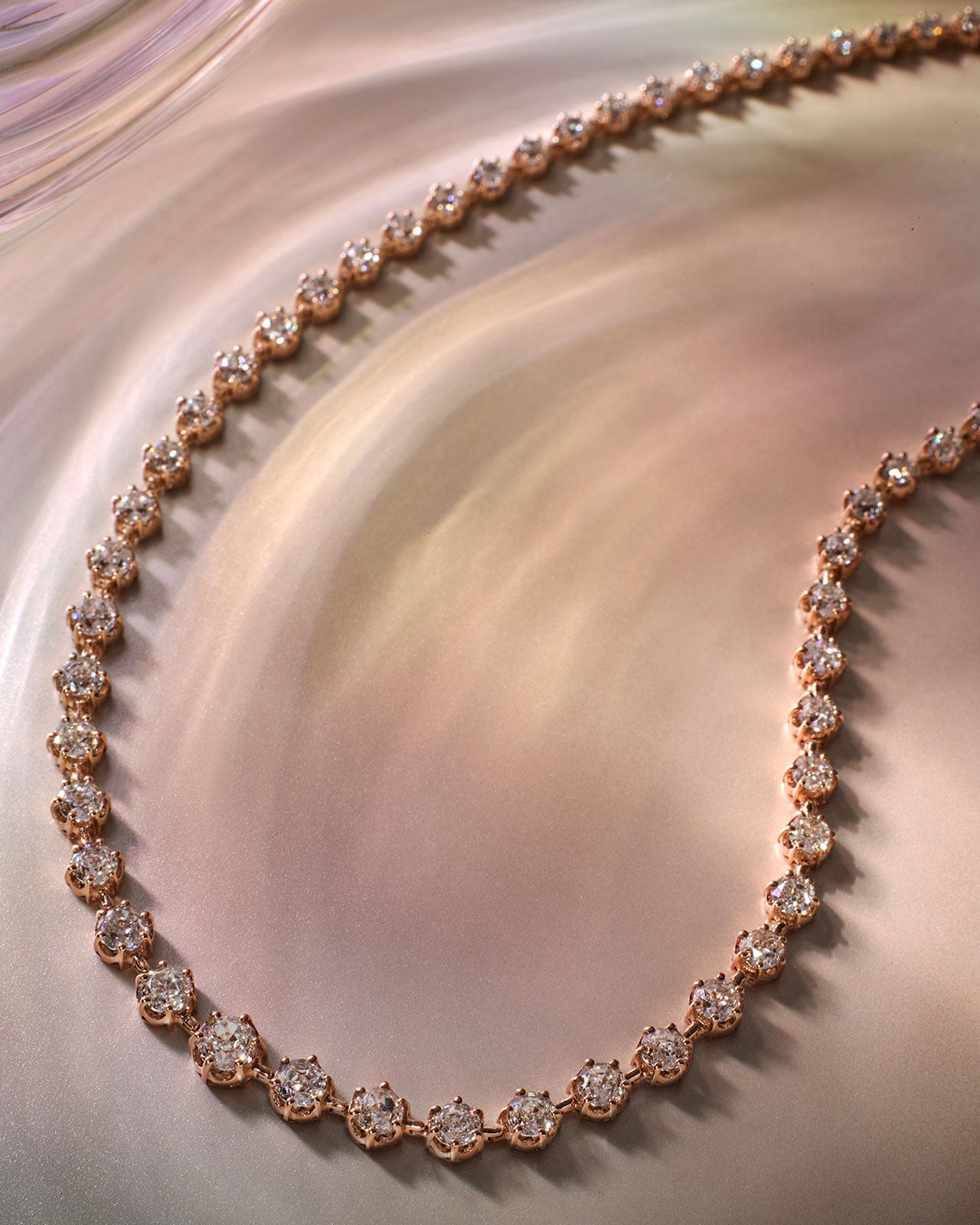 Tennis necklace in 18K pink gold set with diamonds